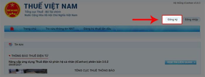 Đăng ký trên trang web của cục thuế Việt Nam